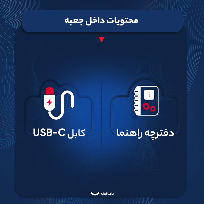 | اقلام همراه بلندگو | کابل USB Type-C / دفترچه راهنما |
