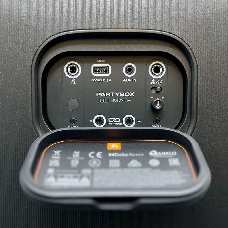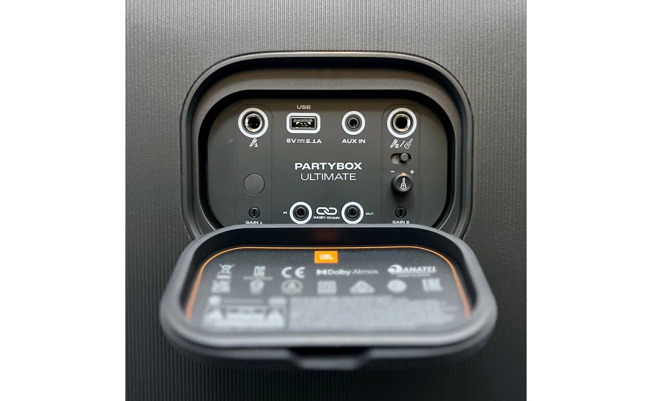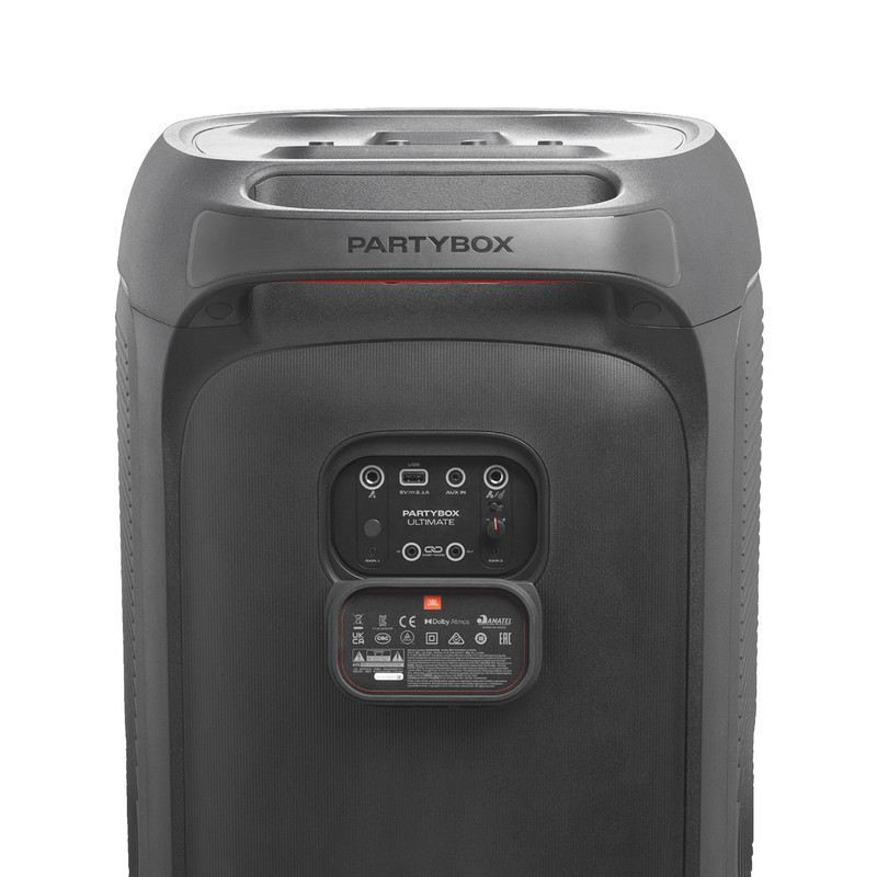 برخلاف بسیاری از مدلهای کوچکتر PartyBox، مدل Ultimate فاقد باتری داخلی است و برای تامین انرژی عظیم ۱۱۰۰ واتی خود، به اتصال مستقیم به برق شهری نیاز دارد. این تصمیم با توجه به قدرت بسیار بالای دستگاه، کاملا منطقی و قابل درک است و تضمین میکند که اسپیکر بتواند بدون هیچگونه محدودیتی از نظر توان، بهترین عملکرد خود را در طولانیترین مهمانیها ارائه دهد. کابل برق همراه دستگاه طولی حدود ۲ متر دارد.
