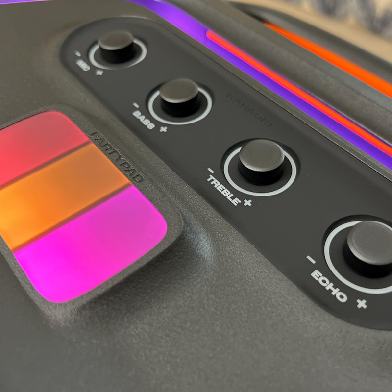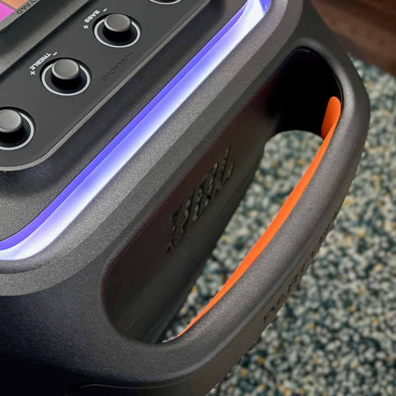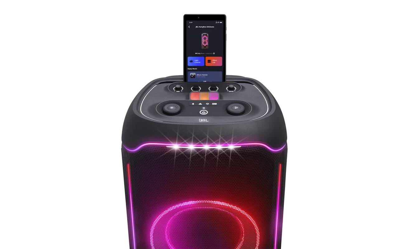 یک مهمانی در سطح Ultimate، نیازمند یک نمایش نور خیرهکننده و هماهنگ است و جیبیال در این زمینه هم سنگ تمام گذاشته. PartyBox Ultimate دارای یک سیستم نورپردازی چندوجهی و بسیار پیشرفته است که نه تنها کل پنل جلویی، بلکه نوارهای کناری و حتی لیزرها و فلشهایی در قسمت بالا و کف اسپیکر را هم در بر میگیرد. این رقص نور پویا، با جزئیات دقیق و به شکلی هنرمندانه با بیت و ریتم موسیقی هماهنگ شده و فضایی مسحورکننده، پرانرژی و کاملا منحصربهفرد ایجاد میکند. کاربران میتوانند از طریق اپلیکیشن JBL One یا پنل JBL PartyPad روی دستگاه، الگوها، رنگها، سرعت و شدت نورپردازی را به طور کامل شخصیسازی کرده و اتمسفری بینظیر برای هر نوع مهمانی، از یک دورهمی آرام گرفته تا یک جشن پرشور، خلق کنند.