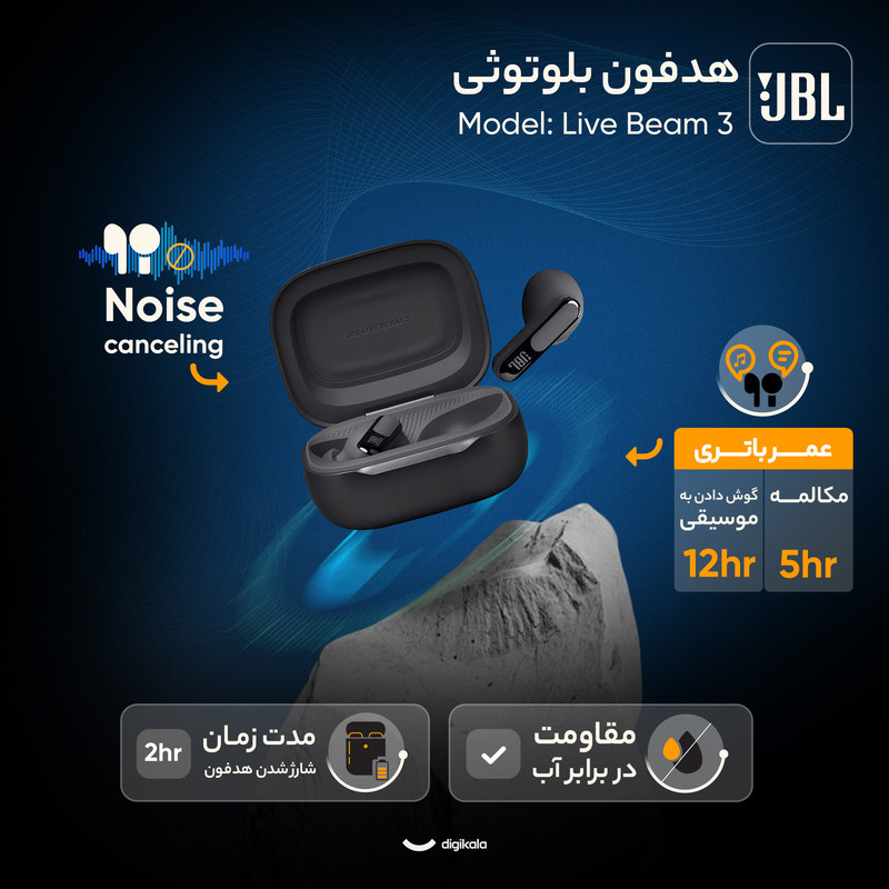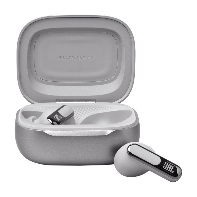 جی بی ال باز هم خوش درخشیده است و هدفون بلوتوثی جیبیال مدل Live Beam 3 را با خصوصیات خاص و متفاوتی نسبت به دیگر هدفونهای بازار، عرضه کرده است. در این نقد و بررسی، نگاهی دقیقتر به ویژگیهای مختلف این محصول خواهیم داشت. اگر بخواهیم به ظاهرLive Beam 3 بپردازیم، باید بگوییم که JBL باز هم موفق شده محصولی با طراحی خاص و مدرن به بازار عرضه کند که از همان نگاه اول پیشرفته بودن و زیباییاش را به رخ میکشد. محفظه شارژ این هدفون، یکی از جذابترین قسمتهای آن است. صفحهنمایش دیجیتالی تعبیه شده بر روی محفظه، ویژگیای است که در کمتر هدفونی مشاهده میشود و به شما امکان میدهد وضعیت باتری و حالتهای مختلف (مانند ANC یا Ambient Sound) را به راحتی بررسی کنید. این نوآوری نه تنها ظاهری مدرن به دستگاه بخشیده، بلکه تجربه کاربری شما را نیز سادهتر میکند. هدفونها طراحی ارگونومیکی دارند که به راحتی درون گوش قرار میگیرند. سریهای این مدل هدفون JBL ظاهر براقی دارد و از مواد باکیفیت ساخته شده است و دوام هدفونها تضمینی خواهد بود.Live Beam 3 در برابر رطوبت هم مقاوم است و برای استفاده در روزهای بارانی یا برای ورزشکاران انتخاب بسیار مناسبی است. استفاده از ترکیب رنگهای براق و مات در کنار یکدیگر، تضادی زیبا و چشمنواز ایجاد کرده است. از دیگر جزئیات طراحیLive Beam 3 میتوان به لوگوی JBL روی هر دو گوشی اشاره کرد که بر روی بدنه حک شده است. طراحی بلندتر ساقهها کمک میکند تا میکروفونها به دهان نزدیکتر باشند و کیفیت تماسهای صوتی بهبود پیدا کند.