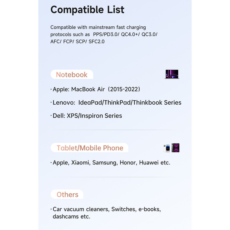 | توضیحات سازگاری | آیفون 15 / 15 پرو / 15 پرو مکس / 15 پلاس / 14 / 14 پرو / 14 پرو مکس / 13 / 13 پرو / 13 پرو مکس / 12 / 12 پرو / 12 پرو مکس / 11 / XS / XS Max / XR / X / 8 پلاس / 8 / 7 پلاس / 7 / 6S / 6 / SE نسل دوم /سری گلکسی S و سری گلکسی A سامسونگ / جاروبرقیهای داخل خودرو / دوربینهای ضبطکننده مسیر (Dash Cam) |