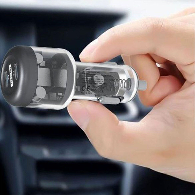 | توضیحات | مجهز به دو پورت USB C با فناوری PDتوان خروجی کلی شارژر 35 واتمناسب برای شارژ گوشی های آیفون و اندرویدطراحی شفاف و کریستالی با قابلیت مشاهده اجزا درونیمقاومت در برابر حرارت و اتصال کوتاهپشتیبانی از فندکی 12 و 24 ولت |