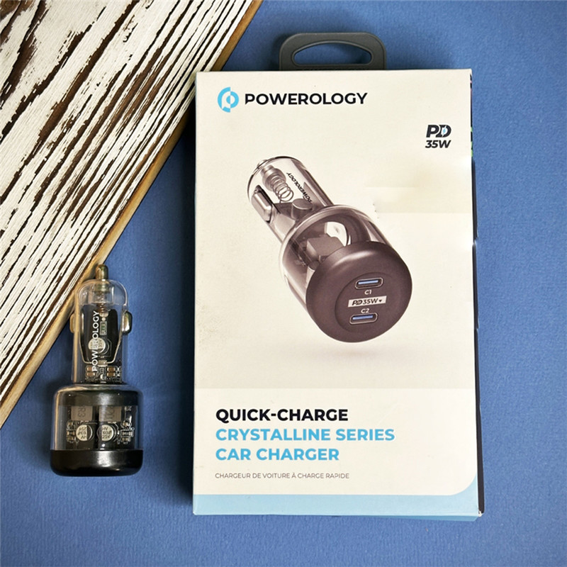 شارژر فندکی خودرو پاورولوژی مجهز به دو پورت USB C با فناوری PD و توان خروجی کلی شارژر 35 وات مناسب برای شارژ گوشی های آیفون و اندروید می باشد.دارای مقاومت در برابر حرارت است.