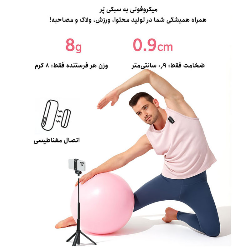 | اقلام همراه | کیس شارژ ، دو عدد فرستنده ، یک عدد گیرنده با درگاه تایپ سی |