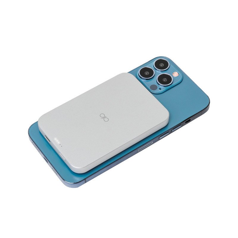 کافی است تلفن همراه خود را روی پد قرار داده و شارژ بیسیم موبایل خود را آغاز کنید. برای شارژ سریعتر، این پاوربانک از فناوری MagSafe بهره میبرد و چندین مگنت داخلی به تنظیم آیفون بر روی شارژر بیسیم کمک میکنند و موجب بهبود کیفیت شارژ میشوند. این دستگاه قادر به ارائه شارژ سریع با فناوری شارژ بیسیم است و میتواند توان 15 وات را به دستگاه در حال شارژ ارائه کند. برای اتصال بهتر این پد شارژ بیسیم، از اتصال مغناطیسی استفاده شده است. این اتصال به قرارگیری بدون مشکل آیفون بر روی شارژر کمک میکند و دیگر ریسکی برای سقوط تلفن یا شارژر وجود ندارد. همچنین وزن سبک و ابعاد کوچک این شارژر، آن را به گزینهای مطلوب برای جابجایی و استفاده در حرکت تبدیل میکند و کاربر میتواند به سادگی آن را در جیب یا کیف خود به همراه داشته باشد. ظرفیت باتری داخلی 5000 میلی آمپر ساعت این شارژر، به کاربر در شارژ سریع و طولانی مدت کمک میکنند. چراغ LED روی دستگاه، قرارگیری درست گوشی بر روی شارژر را نمایش میدهد.