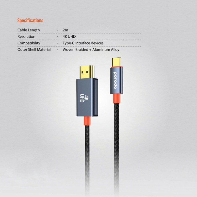 نحوه تماشای خود را با این کابل بافته شده پورودو نوع C با کیفیت بالا به HDMI ارتقا دهید تا عملکردی بی دردسر و با وضوح بالا داشته باشید. این کابل با اندازه گیری 2 متر، گزینه های تنظیم انعطاف پذیری را ارائه می دهد که با نیازهای شما مطابقت دارد، چه برای مانیتور، پروژکتور یا حتی تلویزیون. وضوح عالی 4K UHD در 60 هرتز را تصور کنید و هنگام تماشای فیلم، ارائه ارائه و بازی از تصاویر واضح و پر جنب و جوش لذت ببرید. برای تطبیق پذیری با بسیاری از ابزارهای مختلف، باید با دستگاه های رابط Type-C کار کند. علاوه بر این، این کابل دارای یک پوسته آلیاژ آلومینیوم و یک کابل بیرونی ساخته شده با بافت بافته شده است، که آن را نه تنها بادوام بلکه ضد پیچش نیز می کند و آن را در تنظیمات شما مرتب و دوستانه نگه می دارد. عملکرد plug-and-play اتصال دستگاه را آسان می کند. جهش بعدی را در تجربه چندرسانه ای با کابل بافته شده Porodo Type-C به HDMI انجام دهید، جایی که کیفیت با راحتی روبرو می شود.